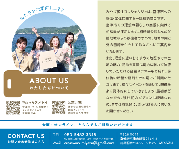 みやづ移住コンシェルジュ→ https://www.city.miyazu.kyoto.jp/site/ijuteiju/18420.html